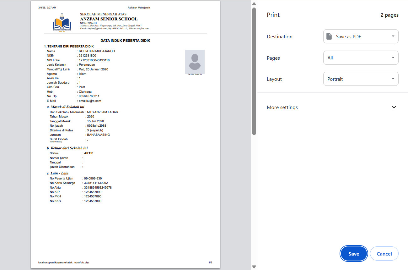 Buku Induk Siswa Digital